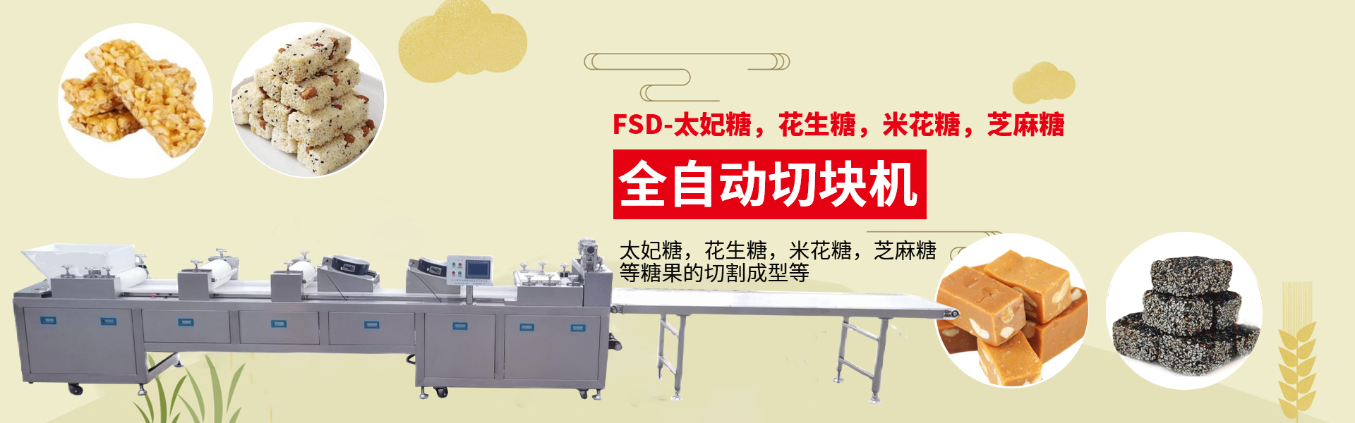 研制開(kāi)發(fā)(fā)沙琪瑪、雪花酥、米花糖、花生酥等休閑食品機(jī)(jī)械專(zhuān)業(yè)(yè)生產(chǎn)(chǎn)廠家全國(guó)(guó) 服務(wù)(wù)熱線: